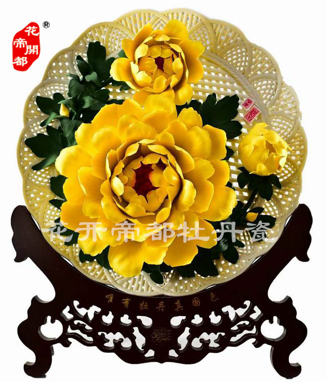 產品系列主要包括:牡丹瓷花盤、牡丹瓷屏風、牡丹瓷盆景、牡丹瓷壁掛和牡丹瓷鼎,形式多種多樣!每一件作品都是藝術的結晶,花、枝、葉均是手工捏制,造型逼真生動。