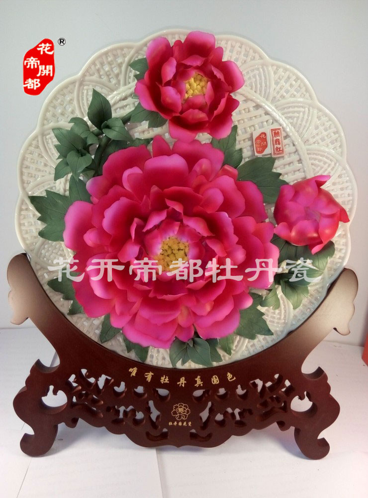 產品系列主要包括:牡丹瓷花盤、牡丹瓷屏風、牡丹瓷盆景、牡丹瓷壁掛和牡丹瓷鼎,形式多種多樣!每一件作品都是藝術的結晶,花、枝、葉均是手工捏制,造型逼真生動。