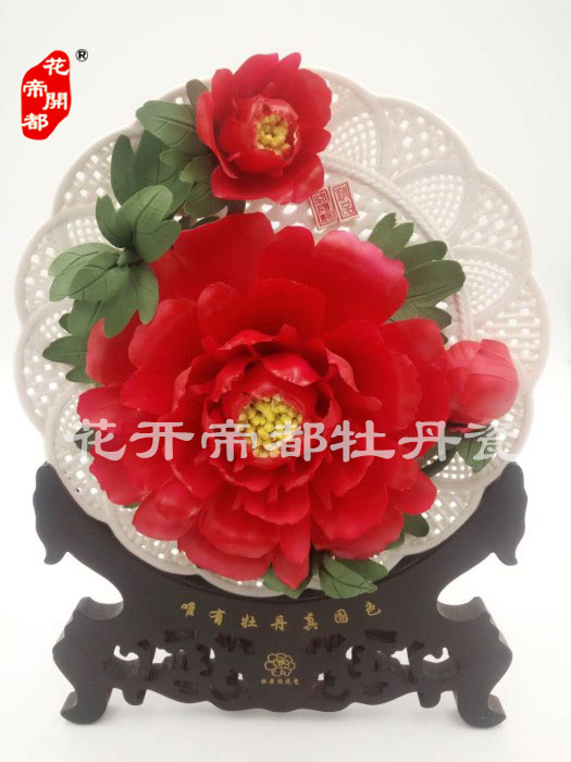 產品系列主要包括:牡丹瓷花盤、牡丹瓷屏風、牡丹瓷盆景、牡丹瓷壁掛和牡丹瓷鼎,形式多種多樣!每一件作品都是藝術的結晶,花、枝、葉均是手工捏制,造型逼真生動。