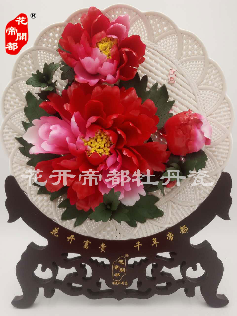 產(chǎn)品系列主要包括:牡丹瓷花盤、牡丹瓷屏風(fēng)、牡丹瓷盆景、牡丹瓷壁掛和牡丹瓷鼎,形式多種多樣!每一件作品都是藝術(shù)的結(jié)晶,花、枝、葉均是手工捏制,造型逼真生動(dòng)。